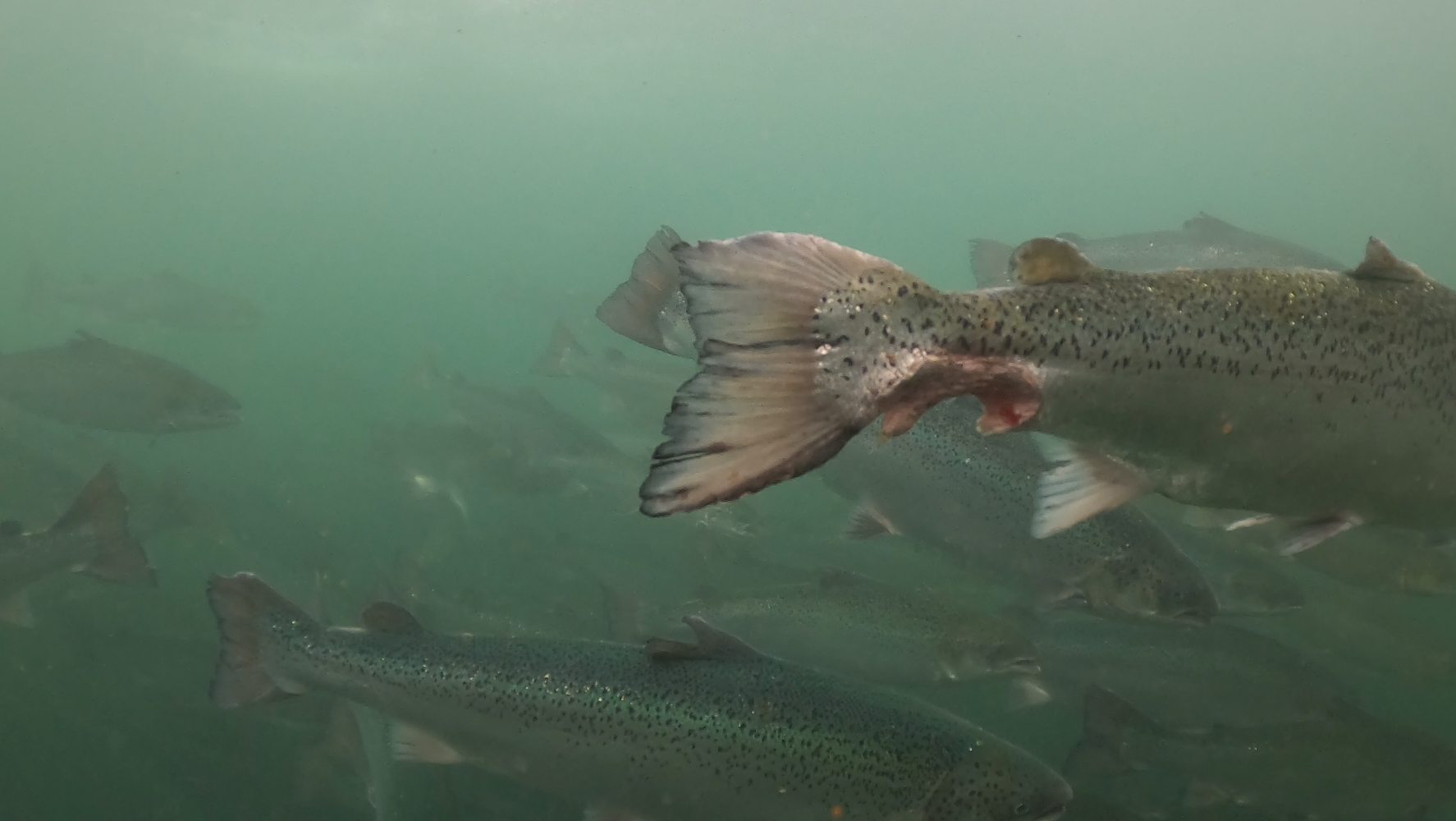 Gli investigatori hanno trovato pesci stipati in spoglie gabbie sottomarine, dove questi migratori naturali non hanno altro da fare che nuotare senza meta in condizioni anguste fino all’età di 2 anni. Il grado di sofferenza di questi animali è tale che la mortalità può raggiungere il 25% prima che il gruppo sia destinato alla macellazione.