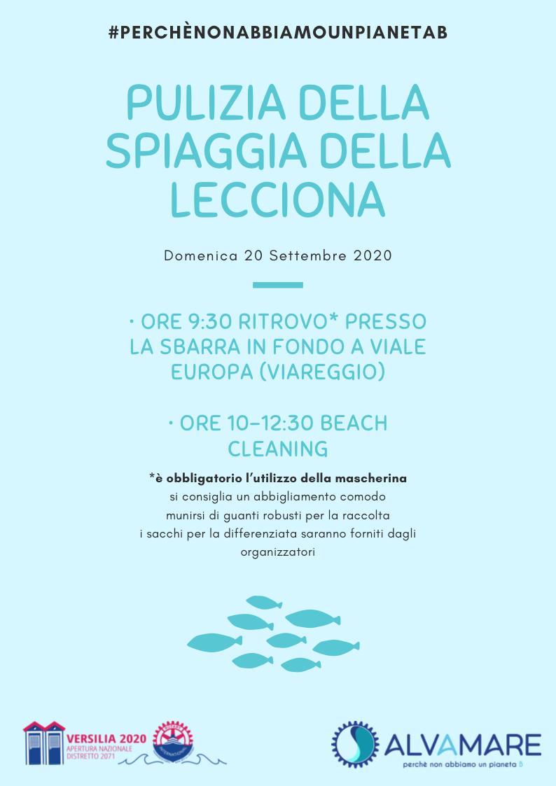 Domenica 20 settembre 2020 ti aspettiamo presso la spiaggia libera della Riserva della Lecciona (Viareggio) per l’ultima pulizia del service distrettuale ambientale “SalvAmare – perché non abbiamo un pianeta B” dell’a.r. 2019/20.